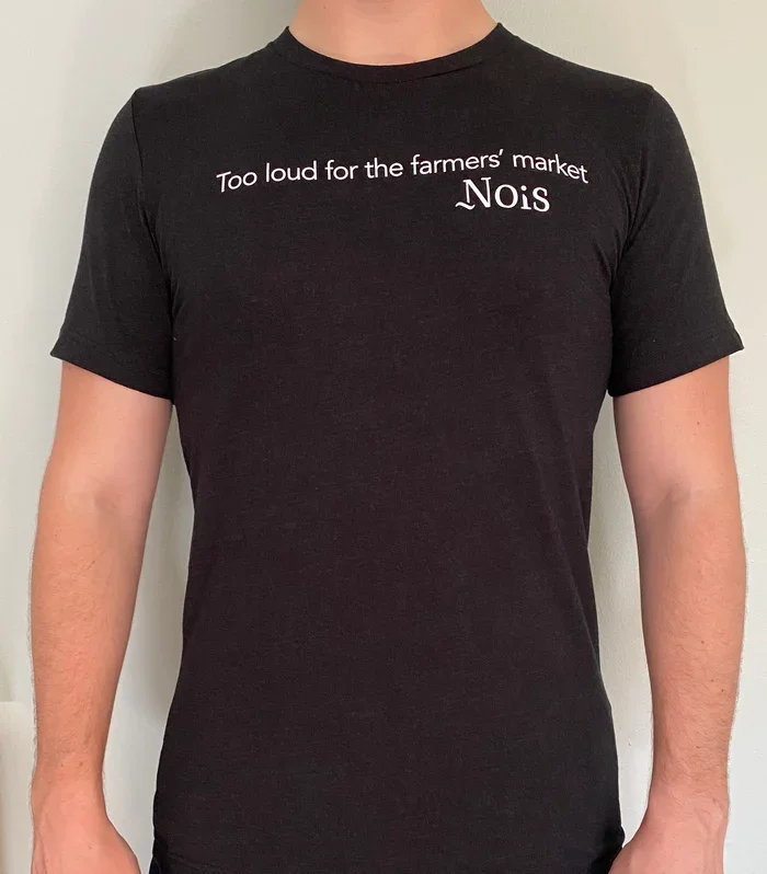 A shirt made from only the finest quality materials a shirt can be made from. This shirt has one of our favorite quotes we have ever received while playing. Order yours now and let your friends know that YOU are too loud for the farmers' market! When you buy a ~shirt, you also get a free sticker to put on whatever you want!